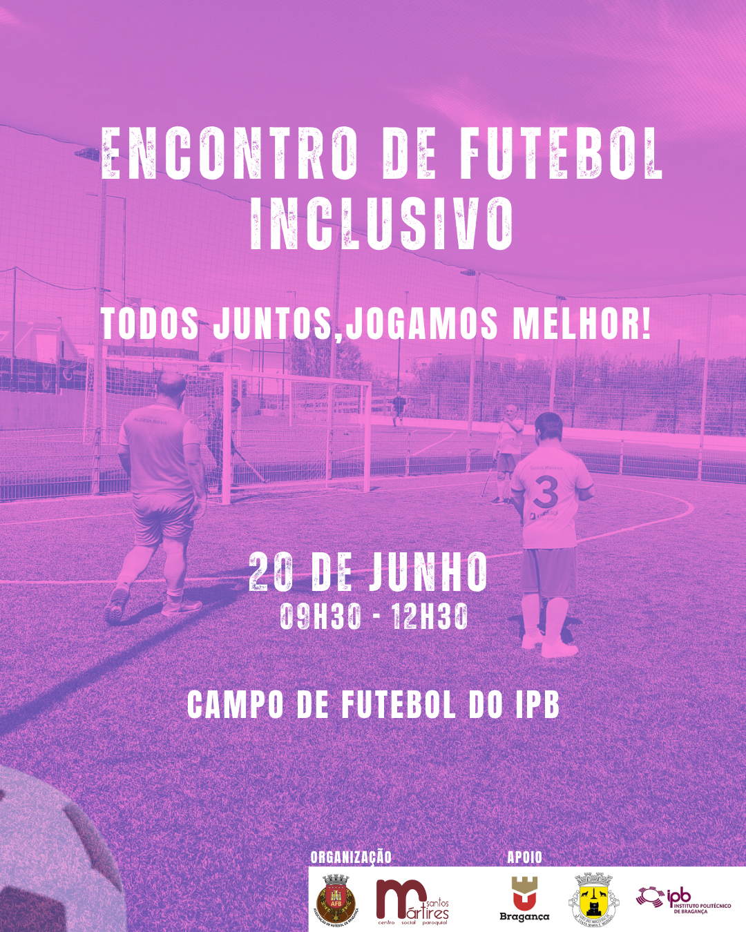 A Associação de Futebol de Bragança e o Centro Social Paroquial dos Santos Mártires, em Bragança, vão promover um "Encontro de Futebol Inclusivo", no próximo dia 20 de junho, no Campo do Instituto Politécnico de Bragança.