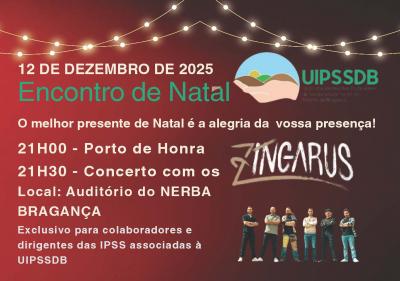 A União das Instituições Particulares de Solidariedade Social do Distrito de Bragança (UIPSSDB) promove, no próximo dia 12 de dezembro, um encontro especial de Natal que contará com um Concerto dos ZINGARUS, destinado exclusivamente a colaboradores e dirigentes das IPSS associadas.