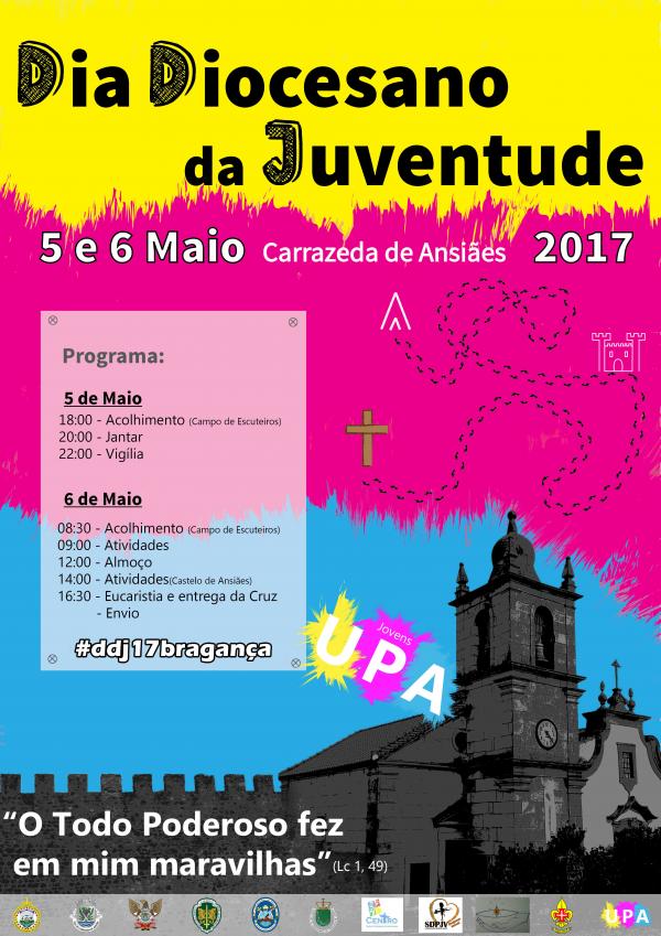 O DDJ'17 quer ser uma destas marcas na nossa amada Diocese de Bragança-Miranda. Todo o programa foi desenhado a pensar nos jovens e no seu crecsimento na fé, sendo protagonistas de um mundo melhor, como nos convida o Papa Francisco.