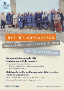 No próximo dia 8 de fevereiro, a Basílica de Moncorvo vai acolher a celebração do Dia do Consagrado. Será um momento especial de ação de graças e reconhecimento pela vida e missão das mulheres e homens que, pela consagração, se dedicam inteiramente ao serviço de Deus e dos irmãos.