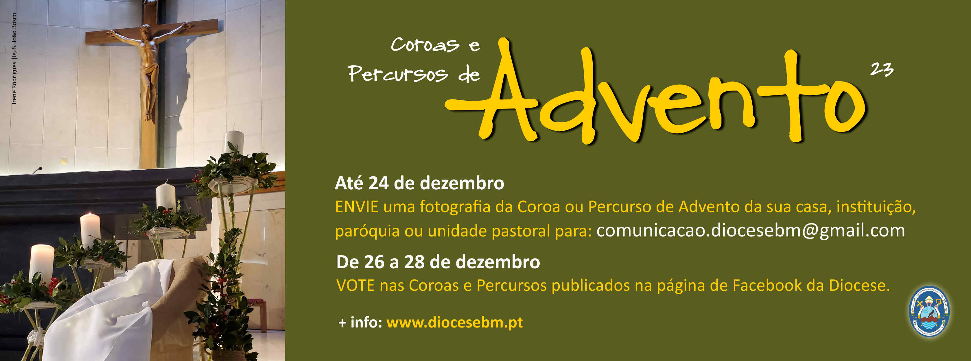 Zeladoras, sacristãos, acólitos, consagrados, seminaristas, colaboradores de IPSS, comunidades escolares, todos os leigos em geral, sacerdotes e diáconos são convidados a fotografar as coroas e percursos de advento das suas casas, paróquias, unidades pastorais e instituições, e a enviar esses registos digitais, até ao dia 24 de dezembro (IV Domingo do Advento), para: comunicacao.diocesebm@gmail.com