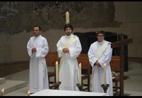 Caros Bruno, Ivo e Duarte, não vos contenteis em celebrar a Liturgia das Horas e dos Sacramentos e sacramentais e a piedade popular, mas fazei cristãos católicos no anúncio e no testemunho de Deus-Amor. Hoje nasceis como Presbíteros e como Diácono, para uma configuração a Jesus Cristo ao serviço da Igreja nesta realidade eclesial que peregrina aqui em Bragança-Miranda na comunhão com toda a Igreja una, santa, católica e apostólica.