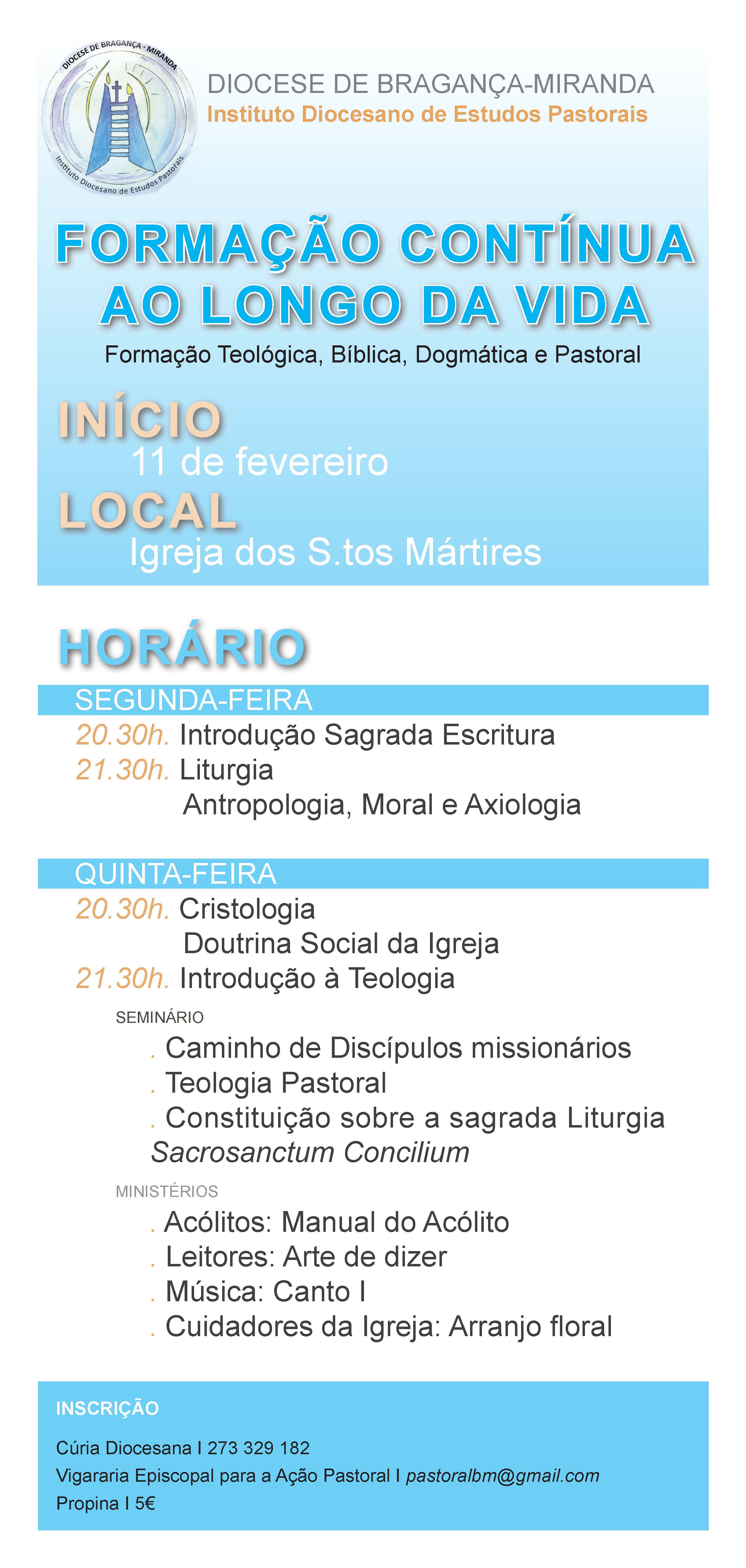Inscrição: Cúria Diocesana - 273 329 182 ou Vigararia Episcopal para a Ação Pastoral pastoralbm@gmail.com