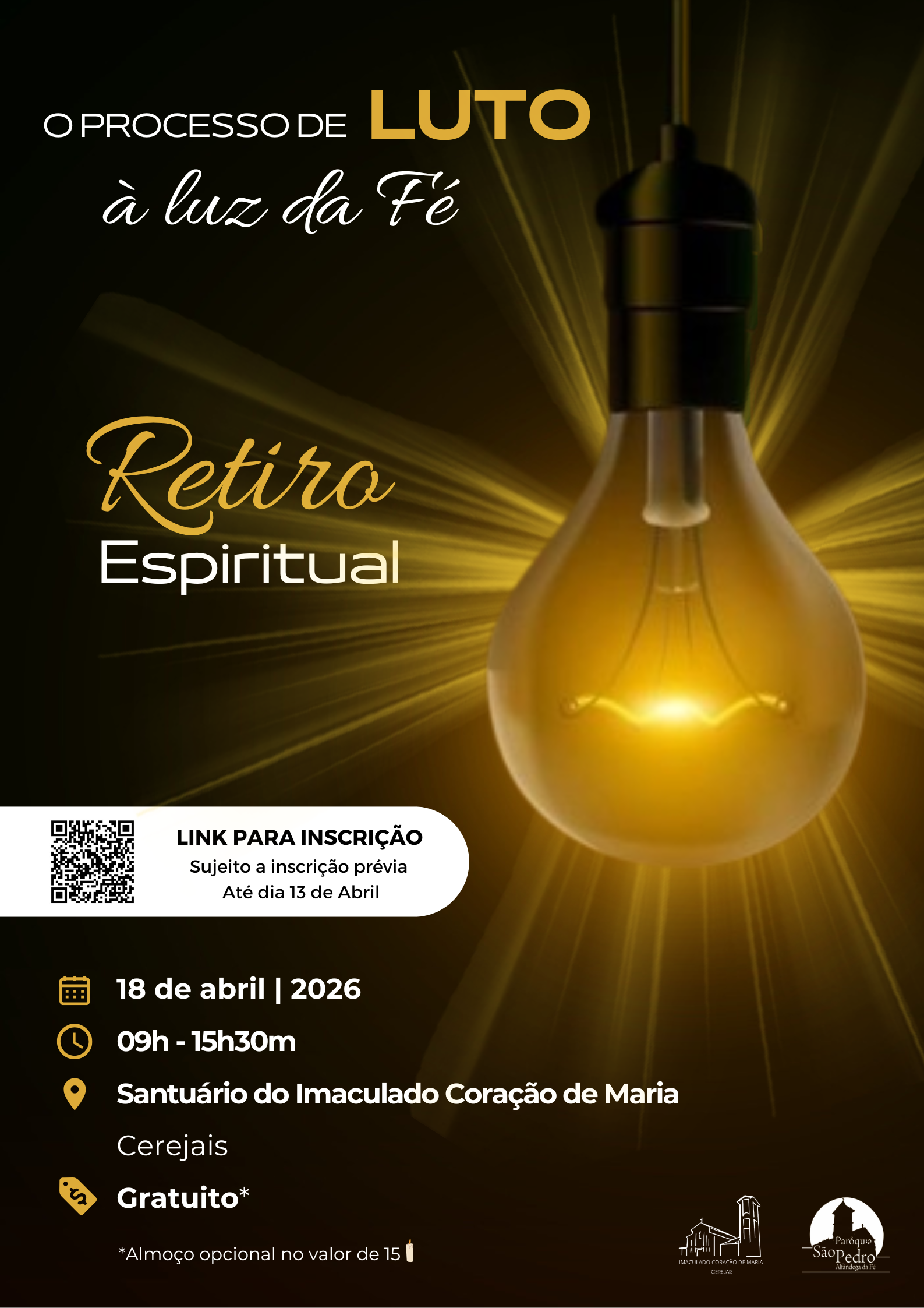 No próximo dia 18 de abril de 2026, o Santuário do Imaculado Coração de Maria, em conjunto com a Paróquia de São Pedro de Alfândega da Fé, promoverá um retiro espiritual subordinado ao tema “O processo de luto à luz da Fé”.
